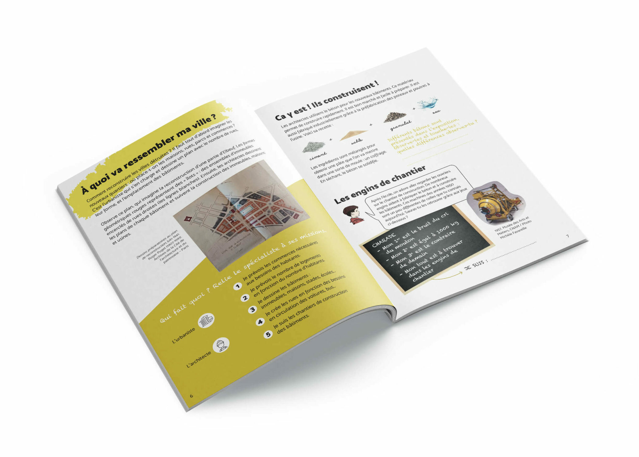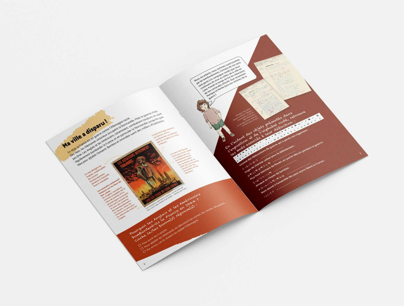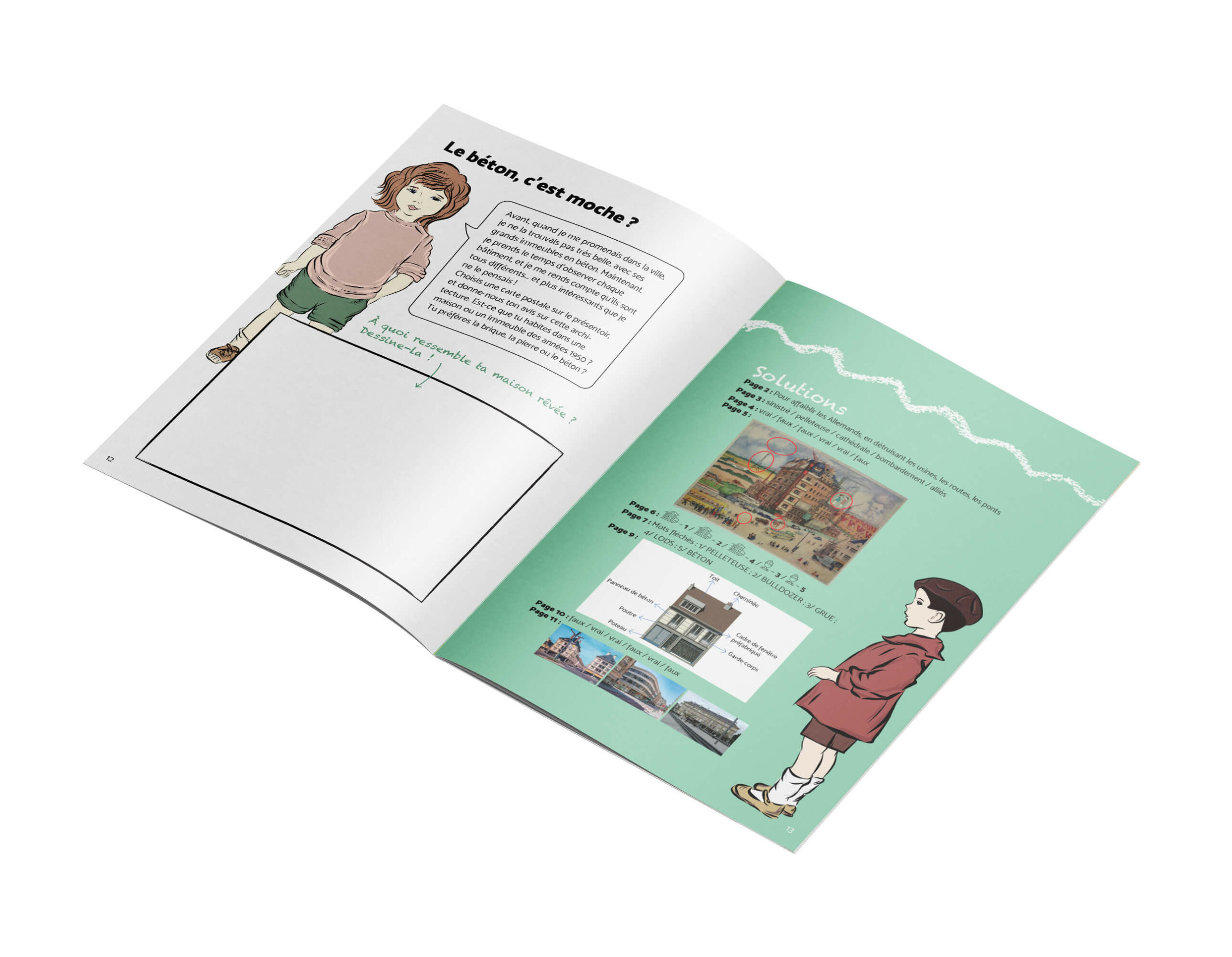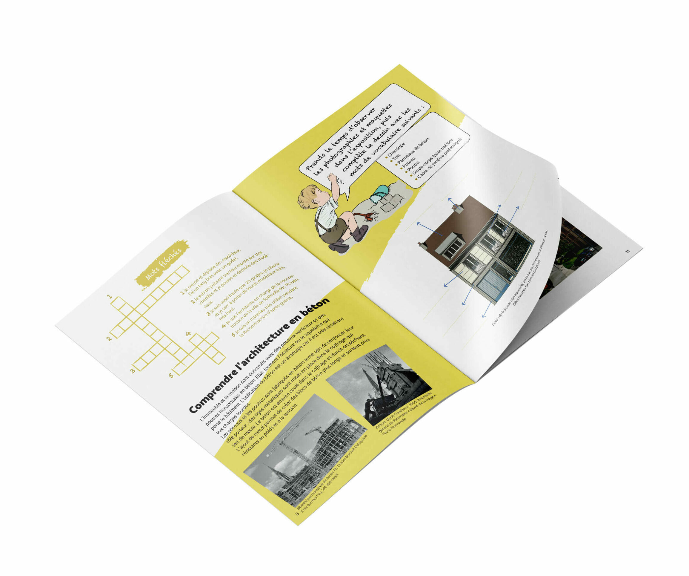 Sous la direction artistique de Sarah Kügel, j’ai réalisé les cimaises de l’exposition (illustrations, composition, traitements de texte et des images en partenariat avec la commissaire d’exposition). J’ai également décliné l’identité visuelle de l’exposition dans la mise en page du livret enfant composé de jeux éducatifs en lien avec l’exposition.